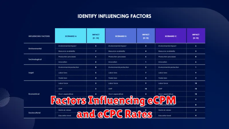 Several elements can significantly impact both eCPM and eCPC rates in digital advertising. Understanding these factors is crucial for optimizing ad campaigns and maximizing revenue.